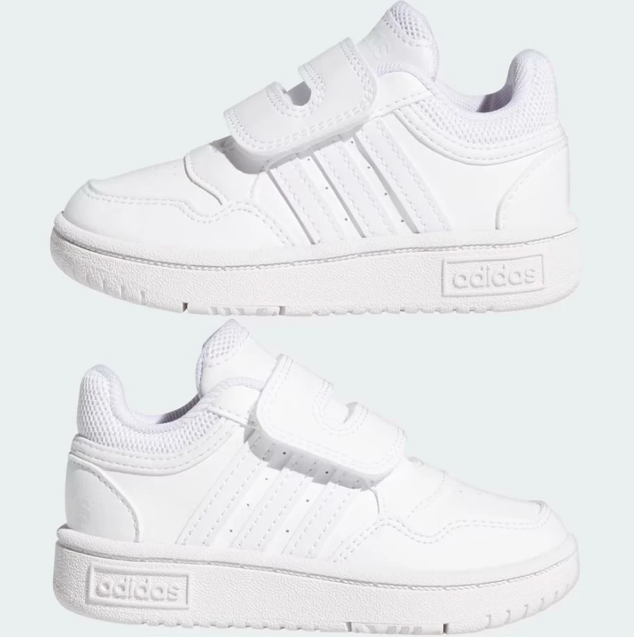 Postaw na wygodę i klasyczny styl dla najmłodszych. adidas Hoops 3.0 CF I to lekkie, dziecięce buty inspirowane koszykarskim designem, które zapewniają komfort, stabilność i łatwość zakładania – idealne na każdy dzień pełen ruchu i zabawy.